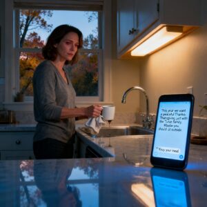 The text came in the second I tipped my coffee cup toward the sink and watched the last brown streak spiral down the…