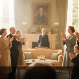 The chandelier exploded in light just as she walked in — sequins of glass catching every camera flash, every startled gasp, every ounce…