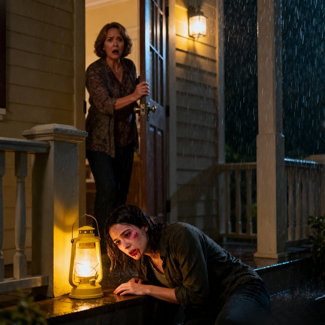 Under the porch light the injuries had looked like shadows. Under my lamp they became facts. The left eye was going violet at the edges, that swelling you see when the skin has decided it’s had enough. The lip was open at the corner, not gory, but raw and mean. Finger-shaped bruises ghosted the wrists. Her hands hovered over her stomach like she was keeping something from spilling out.