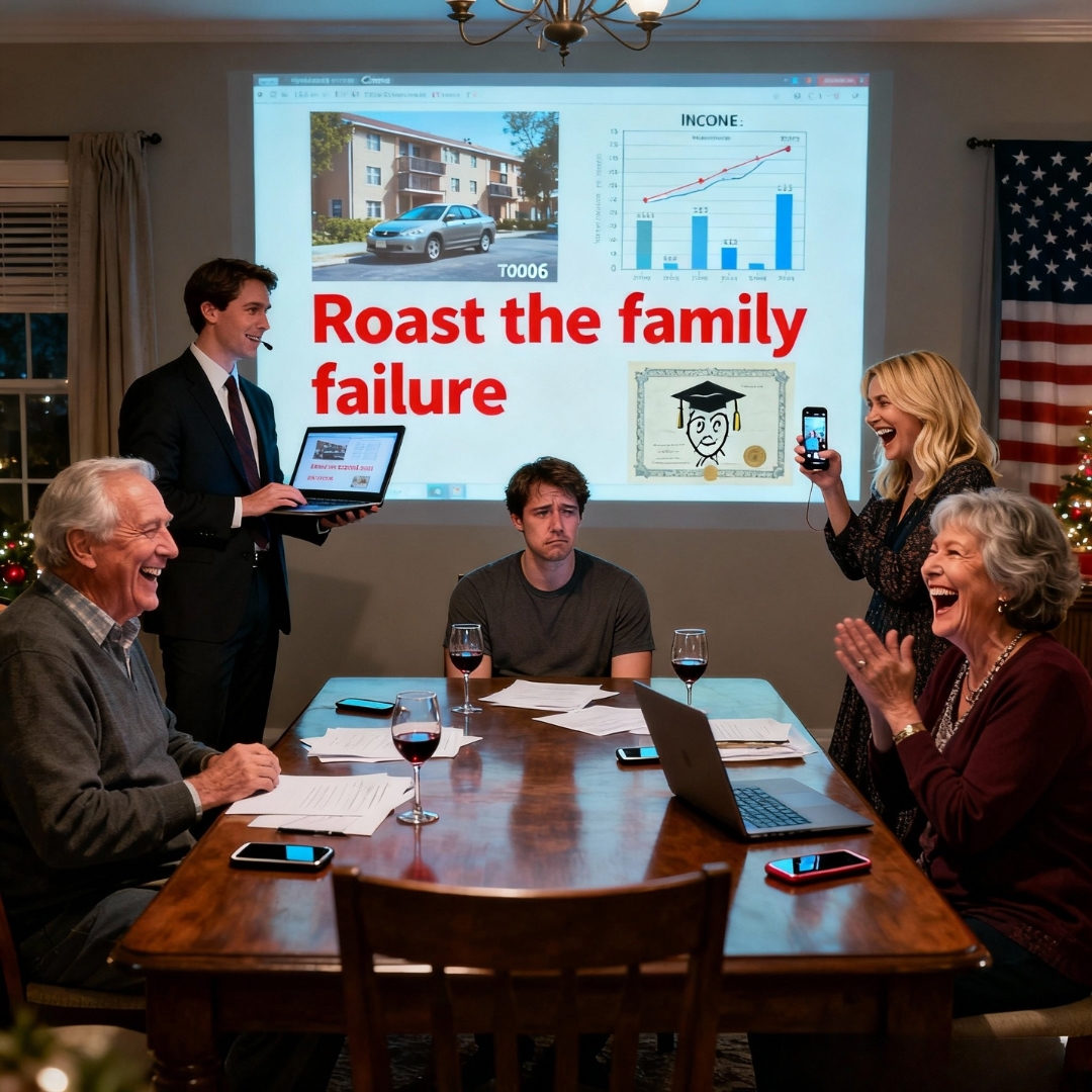 The first slide hit the living room television like a slap: a full-bleed photo of my apartment building, night mode too crisp, the leasing banner in neon red blurring into the reflection of my mother’s wineglass. Across the bottom, in bold block letters, “Still Renting at 35.” My brother, Charles, clicked the space bar on his laptop with theatrical grace, and the family cackled like a studio audience. You could hear Dad’s bottle clink against the coffee table, the kind of bottle that comes in a twelve-pack from the big-box warehouse on the west side of town. It was Friday night in a tidy suburban ranch on a tree-lined street where the HOA keeps mailboxes matching like a row of obedient soldiers. I looked at the screen, smiled, and slid my face into that harmless shape you practice when you learn early that absorbing a joke keeps the room from turning on you.