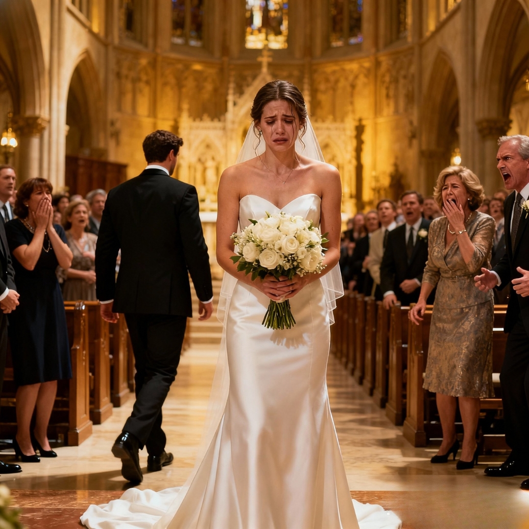 The nave inhaled in horror. Pews scraped the floor. My mother screamed. Juliana—my sister—shot to her feet, green eyes sparking. Below the altar, Uncle Simon—the man walking me down the aisle in my father’s stead—rose so fast the wood creaked, his deep voice booming and distant as if underwater. Kyrie turned and strode down the aisle. His groomsmen trailed like a procession of betrayal, shadows skating on marble. The heavy oak doors of St. Mary’s slammed—one of those sounds you feel in your ribs.