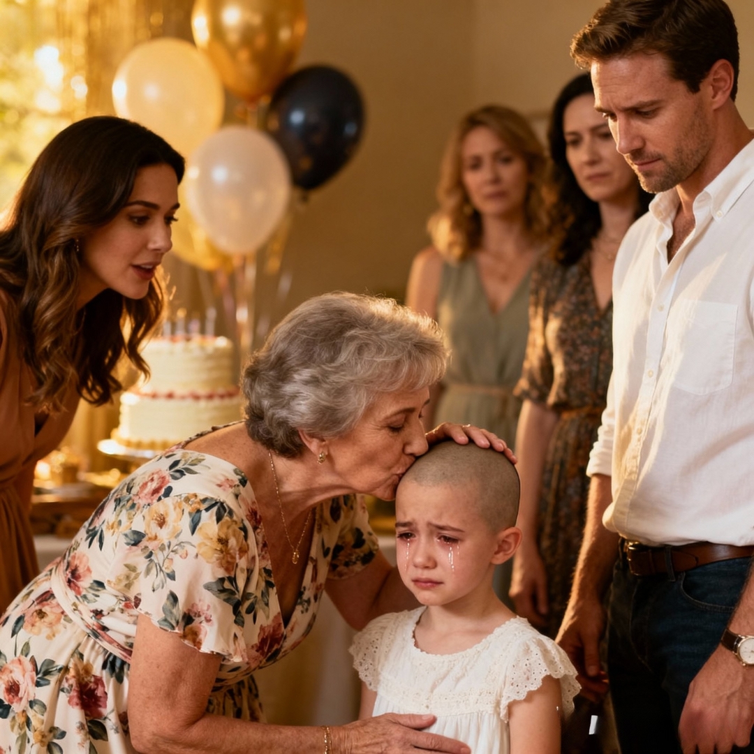 Everyone cheered. Lily beamed, her face radiant. Later, when Evelyn was tucking her into bed, Lily looked up, her eyes serious. “Grandma, do you think my hair will ever come back?”
