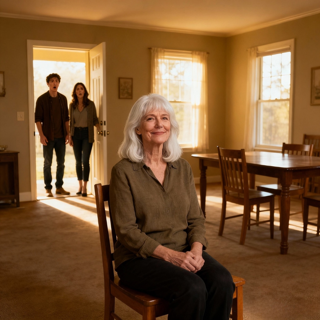 I didn’t move. I was already there, hands folded on my lap, the one chair under me, the room stripped down to the truth. No plates. No roast. No gravy boat. Just space and the sound of their shock.
