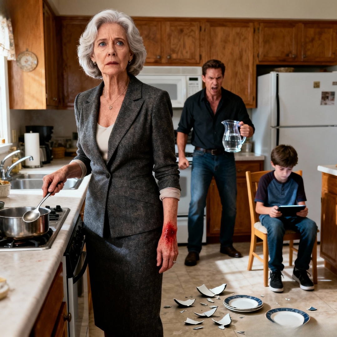 The sound my skin made when the water hit it will go with me to the grave. A gasp, a hitched inhale, the small, stupid shatter of ceramic. My hand flew to the faucet on instinct, cold water rushing over red, blistering flesh. Over Kyle’s game, over the kettle hiss, I heard my son’s voice, clear and flat: “Give him the card or get out. We’re not running a nursing home.”