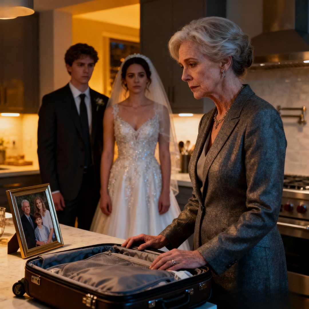 The chandelier threw a thousand tiny suns across the Virginia Beach granite when Amanda said the quiet part out loud: “The best gift would be if you disappeared from our family.” Her wedding dress, zippered and pristine, hovered on the pantry door like a white flag that never intended to surrender. Michael—my son—nodded without meeting my eyes, as if the floor tiles were suddenly more interesting than his mother. Outside, a U.S. flag snapped on a porch down the cul-de-sac, the kind of tidy American street where lawns are even and neighbors smile with all their teeth.