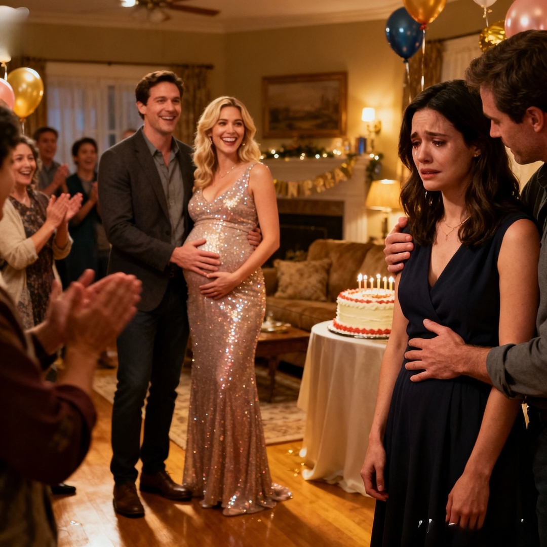 A champagne cork ricocheted off the chandelier and rained glitter onto a sheet cake that spelled out Happy Anniversary in swooping buttercream, just as my sister-in-law stepped into the center of my Houston living room and smiled the way people smile right before changing your life without your consent.