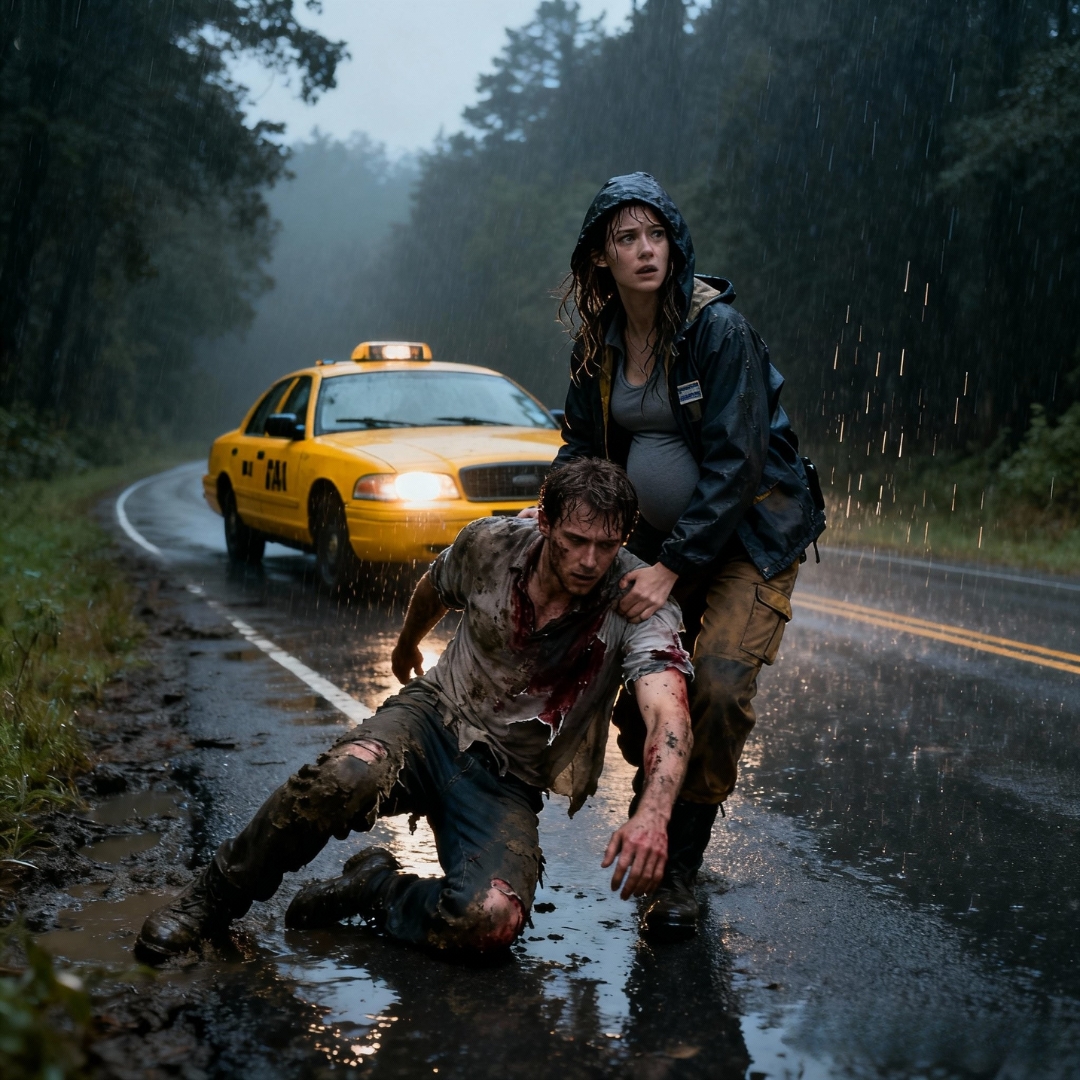 She muttered under her breath, turning back toward town as the storm intensified. Thunder cracked, and the road glistened.