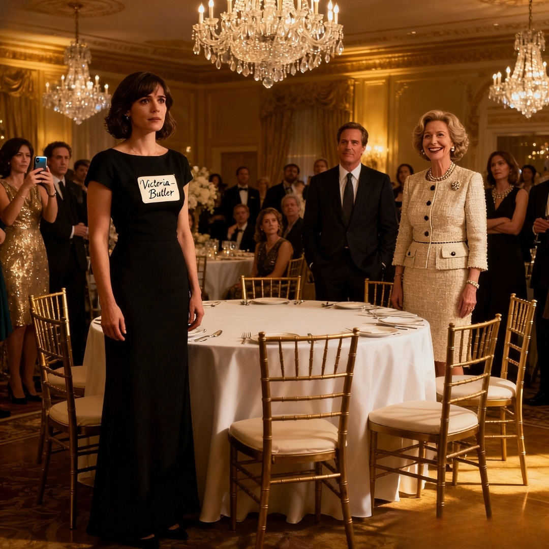“You’re just staff here,” she said cheerfully, but loud enough for the lobby to go quiet. “No chair, no plate, no place. The service entrance is in the back.”