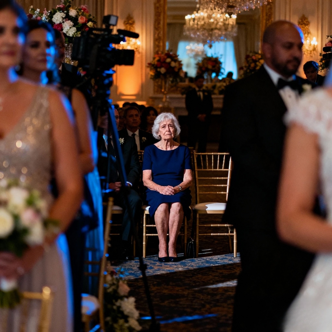I stood there in my navy dress—one I’d worn to church, to retirement parties, to everything except a wedding like this—feeling the eyes of the old-money crowd slide over me like judgment in sequins. Diamonds glittered like constellations on wrists and collars. Champagne flutes chimed like soft warnings. Every tablecloth looked more expensive than my monthly pension check.