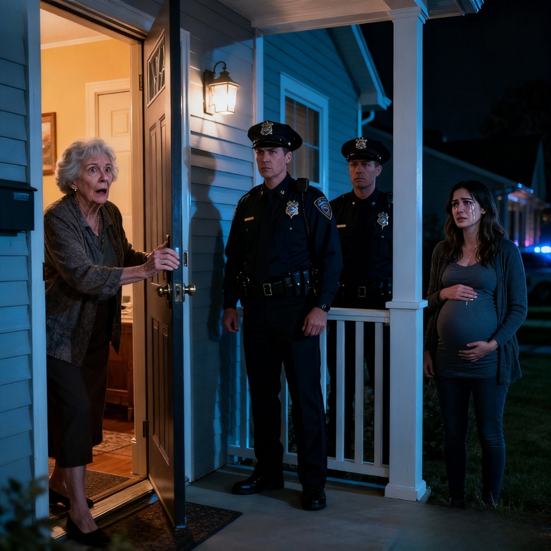 I opened the door to see two police officers on the porch, their patrol car parked at the curb, lights flashing gently through the fall leaves. Behind them, in her best performance yet, stood Jessica—eyes red, cheeks wet, her hand on her belly like she was protecting something fragile.