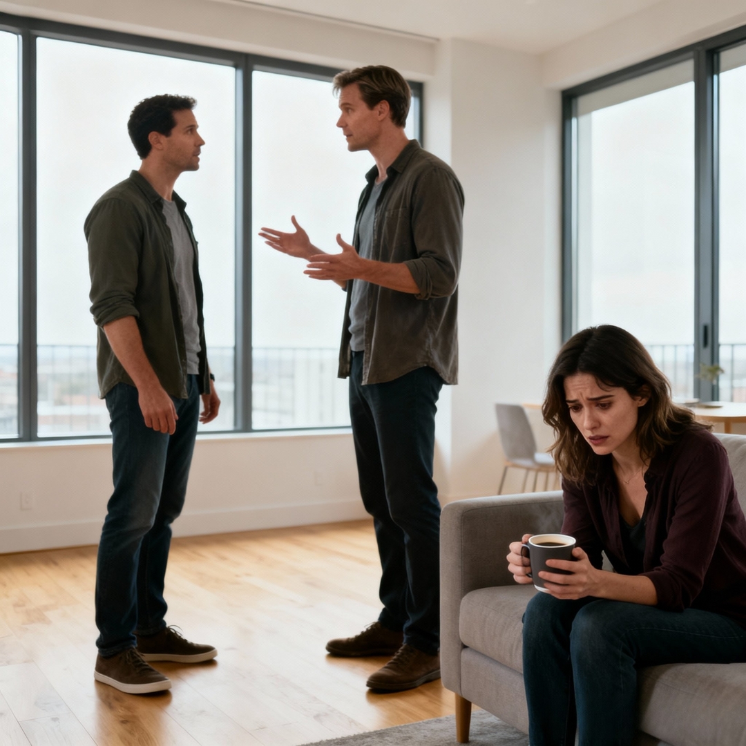 We sat—Ethan and Hans in armchairs, me on the edge of the couch, fingers wrapped around the mug I didn’t remember agreeing to. I watched them talk while the city glittered outside.