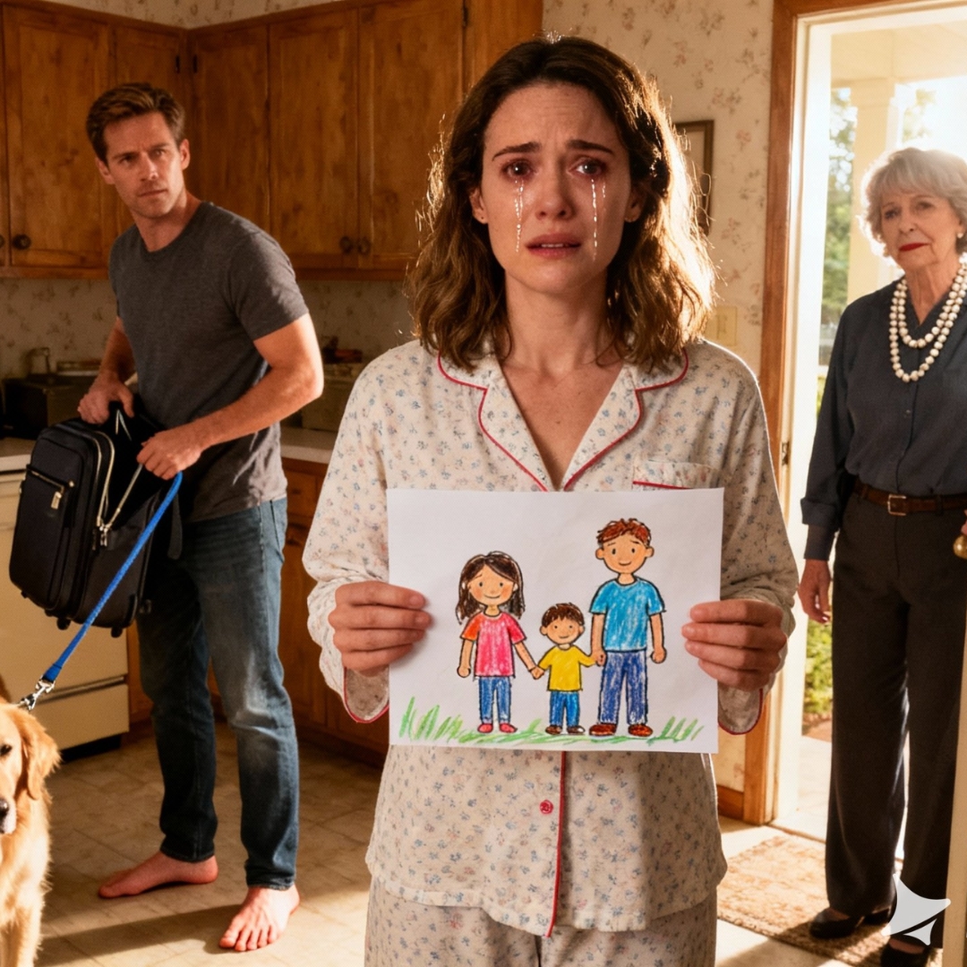Instead, I noticed Eli’s drawing sitting on the counter—a crayon picture of the three of us holding hands under a giant Texas sun, Zeus next to us with a huge, crooked smile. I picked it up carefully, like it might shatter, and walked past them down the hall.