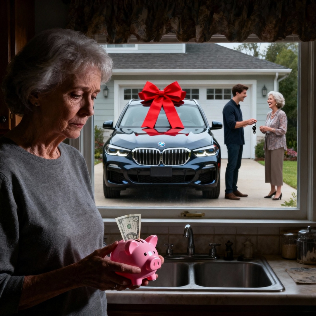 The Christmas lights on my Virginia porch were still flickering when the engine roared—deep, polished, unmistakably expensive. I froze at the kitchen window, spatula dangling from my hand, as the metallic shine of a brand-new BMW eased into my driveway like it owned the place. The red bow on the hood glowed under the lights like a taunt, a neon billboard announcing exactly where I fell on the family totem pole.