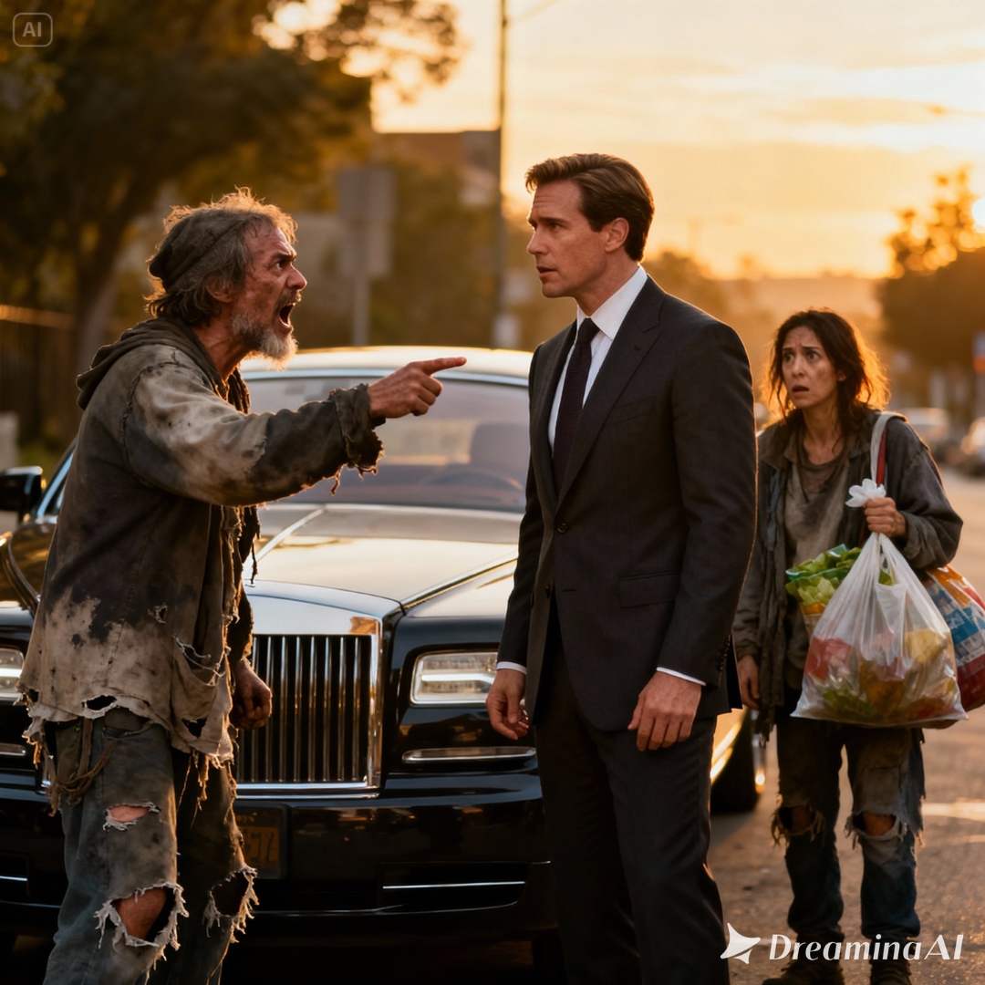 The man let out a harsh laugh, more pain than humor. “This is why I hate rich people,” he snapped, and the words came out louder than he meant them to. Pedestrians turned their heads. “You only think about yourselves. Fancy clothes, fancy cars, and you can’t do anything for anybody else.”