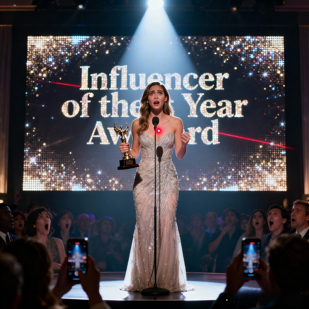 I walked up the steps, blinded by lights, deafened by applause. The trophy was heavier than it looked. The microphone loomed.