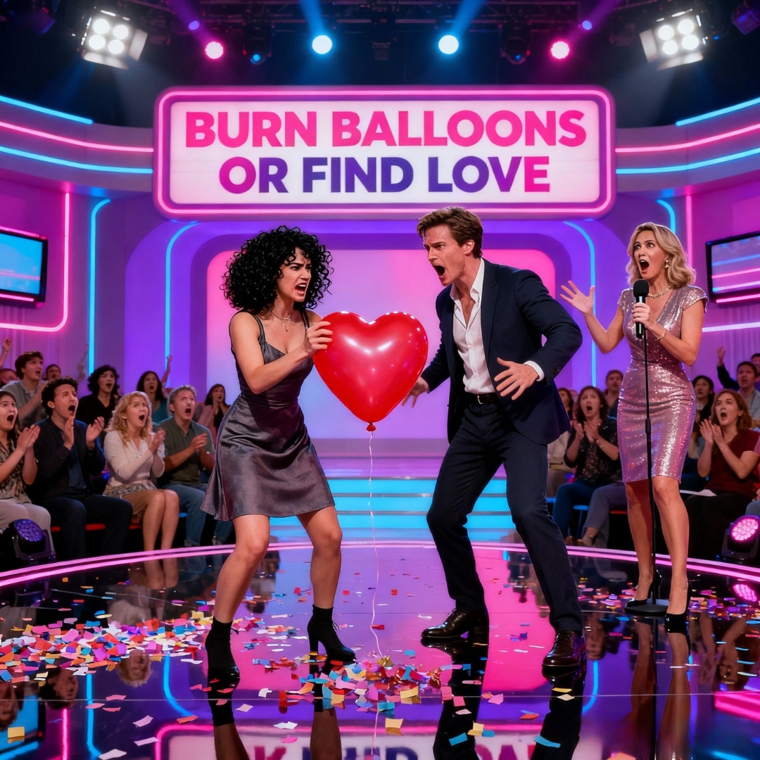 They floated above the glossy set lights and chrome stools, tethered by thin white ribbons that caught the glare as the studio audience screamed on cue. The LED wall behind the host flashed hot pink and electric blue: POP THE BALLOON OR FIND LOVE! In the lower corner, the little red “LIVE” icon glowed for the millions watching on YouTube from all over the United States.