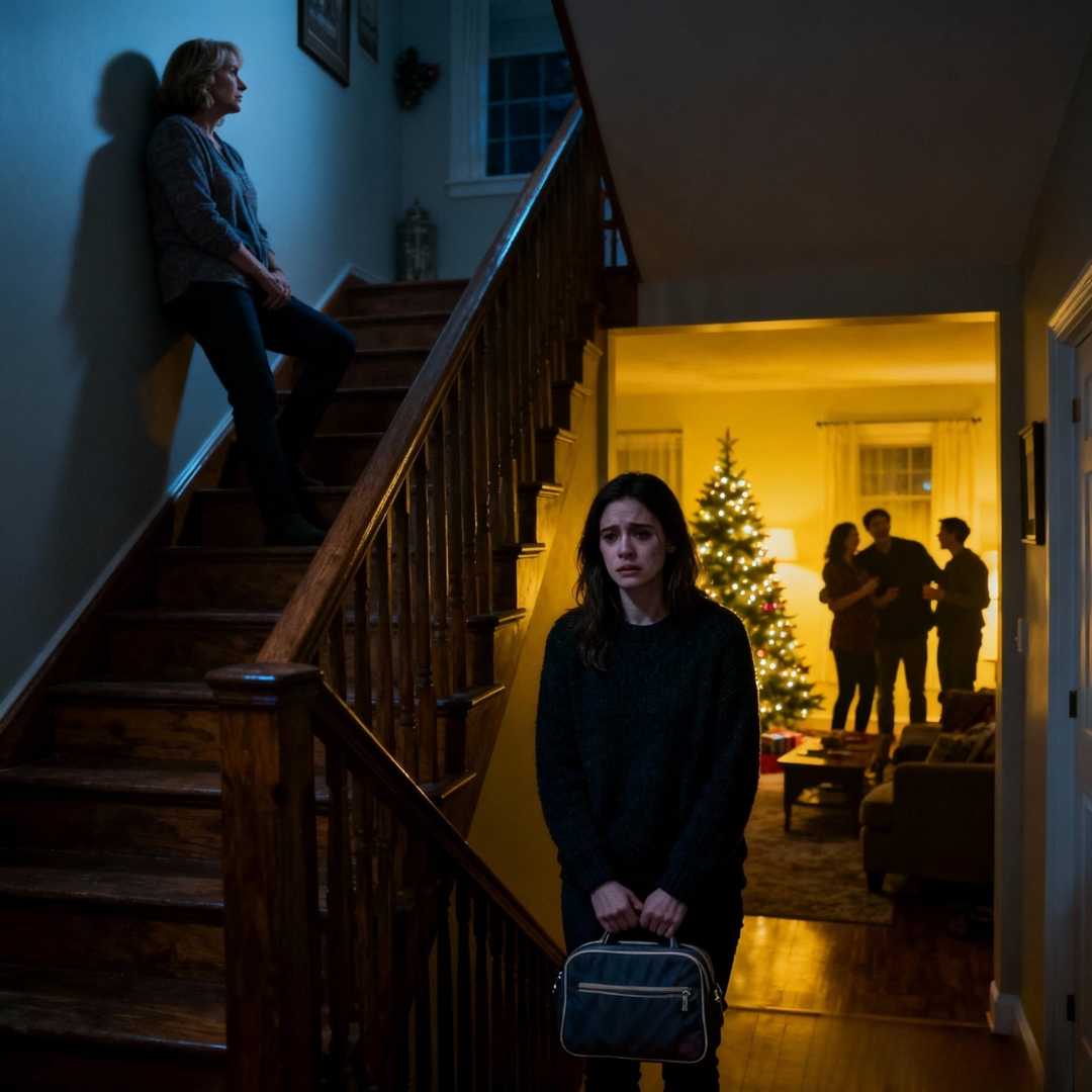I turned. She was at the top of the stairs in her Christmas apron, hand pressed against the wall, like she had to hold the house up with her palm.