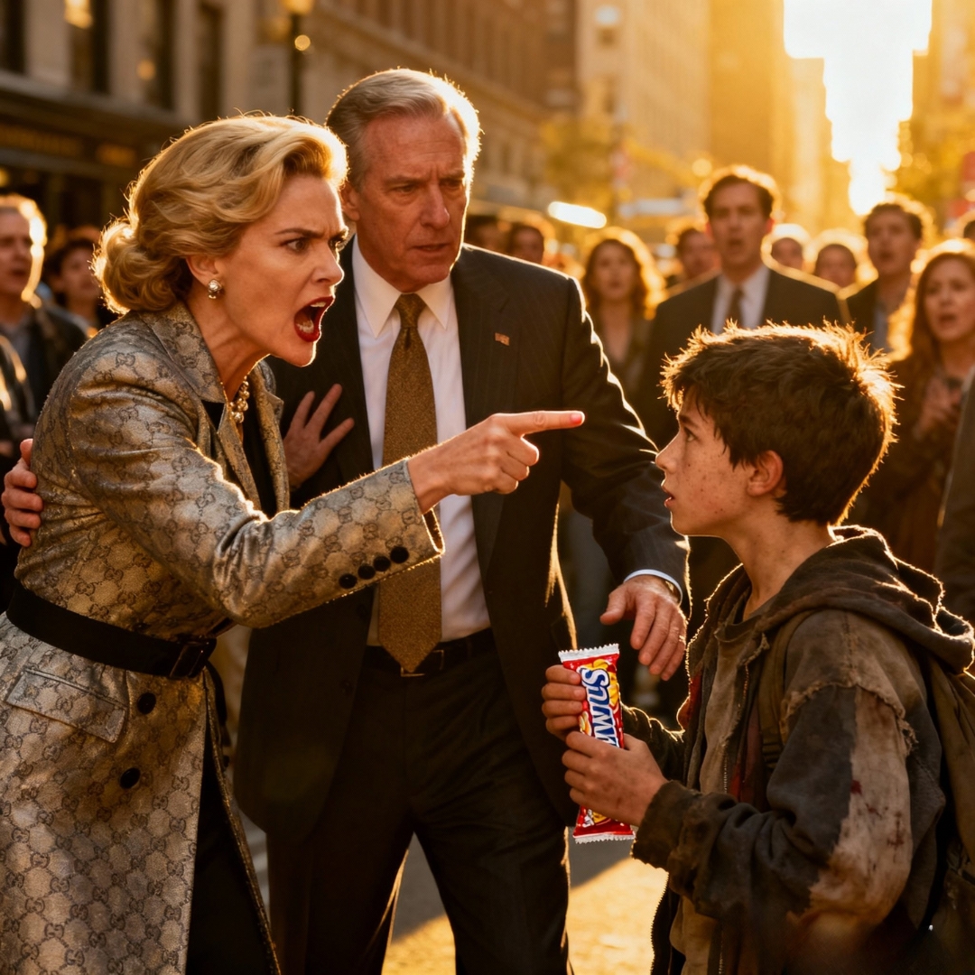 “Hey!” she snapped, yanking her designer tote away as his hand brushed the strap. “Get your hands off that. Are you trying to steal my bag?”
