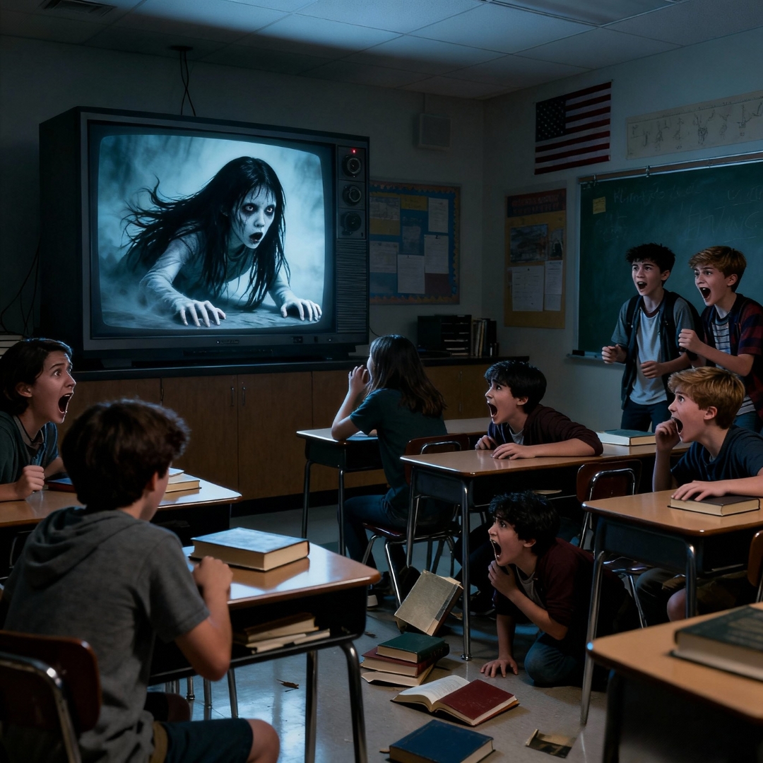 He saw his own reflection in the classroom TV as the ghost girl stepped out.