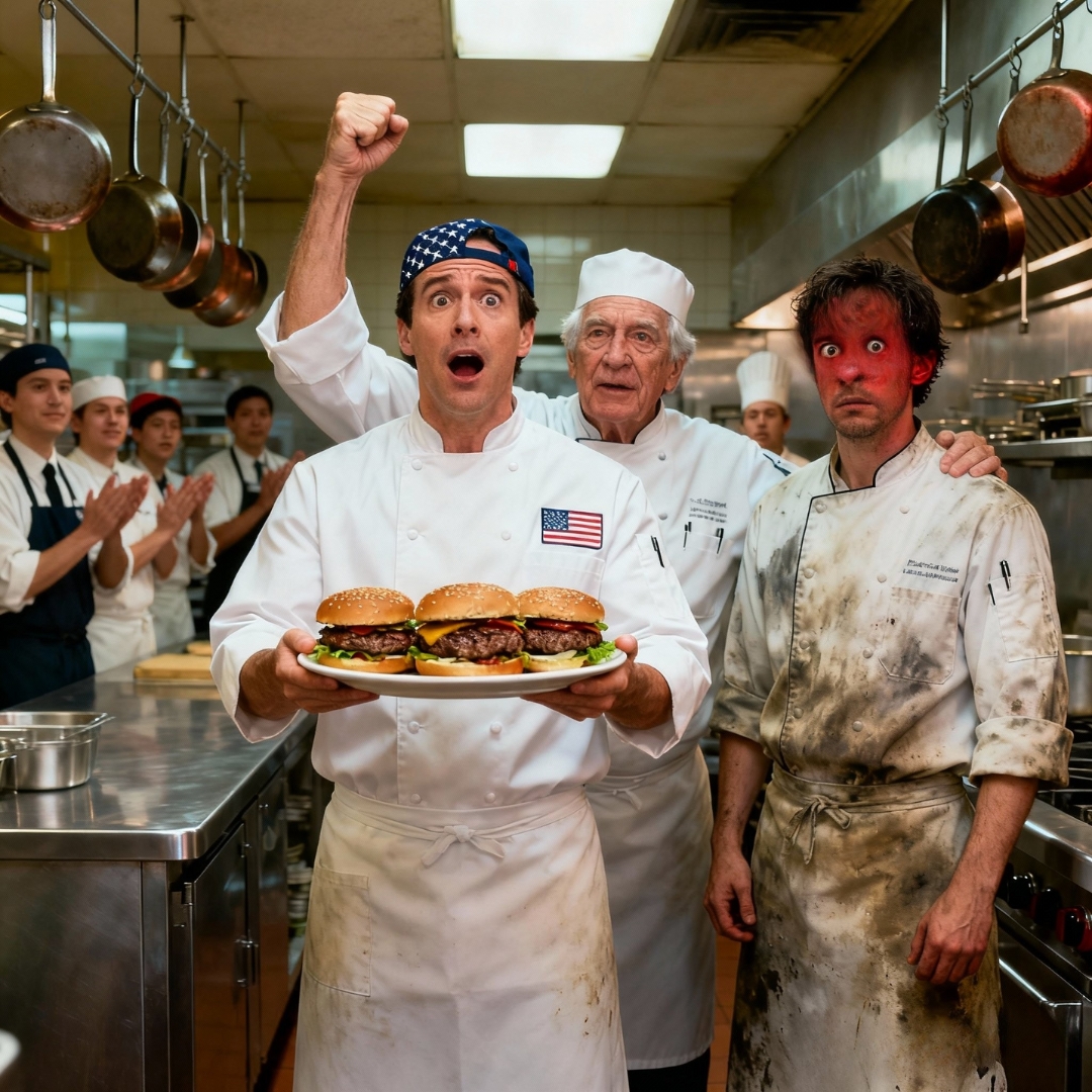 Grease hissed like fireworks across the flat-top grill, and every eye in the crowded downtown Los Angeles kitchen snapped to the silver bell on the pass.