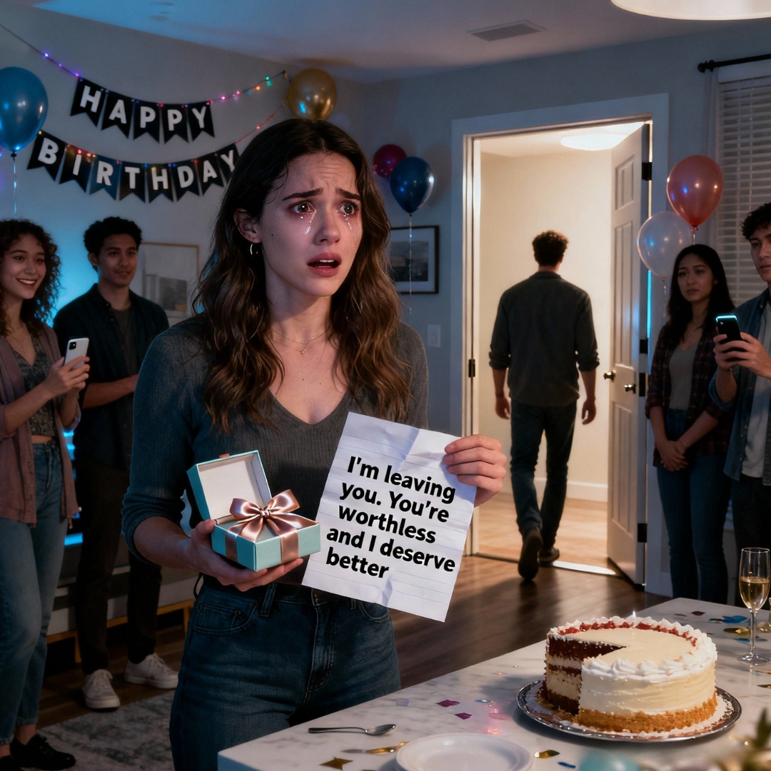 Everyone was staring at me. At the note in my hand. At the black box dangling from my fingers. At the cake that suddenly looked ridiculous, covered in neon frosting and little plastic candles that spelled out “HAPPY BDAY QUEEN.”