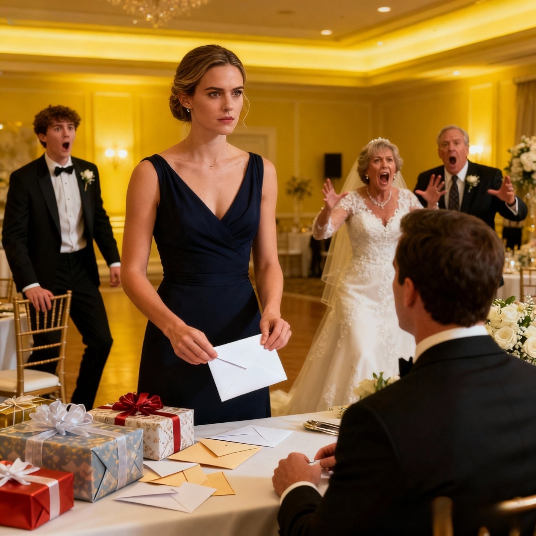 Behind me, I could see the gift table I’d just passed, draped in white cloth, stacked with shiny envelopes and gift bags. My envelope was there, a plain white one, slightly bent at the corner from when I’d placed it down earlier that afternoon, thinking I was dropping off something meaningful.