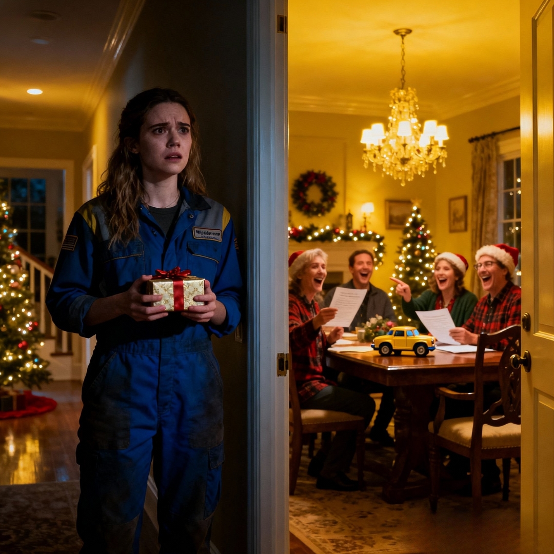Paper rustled. Someone read from a sheet, then stopped and adjusted a line. It hit me then, what they were doing. A skit. A Christmas sketch. About me. About the one thing I loved. About the grease that never fully washed out from under my nails.