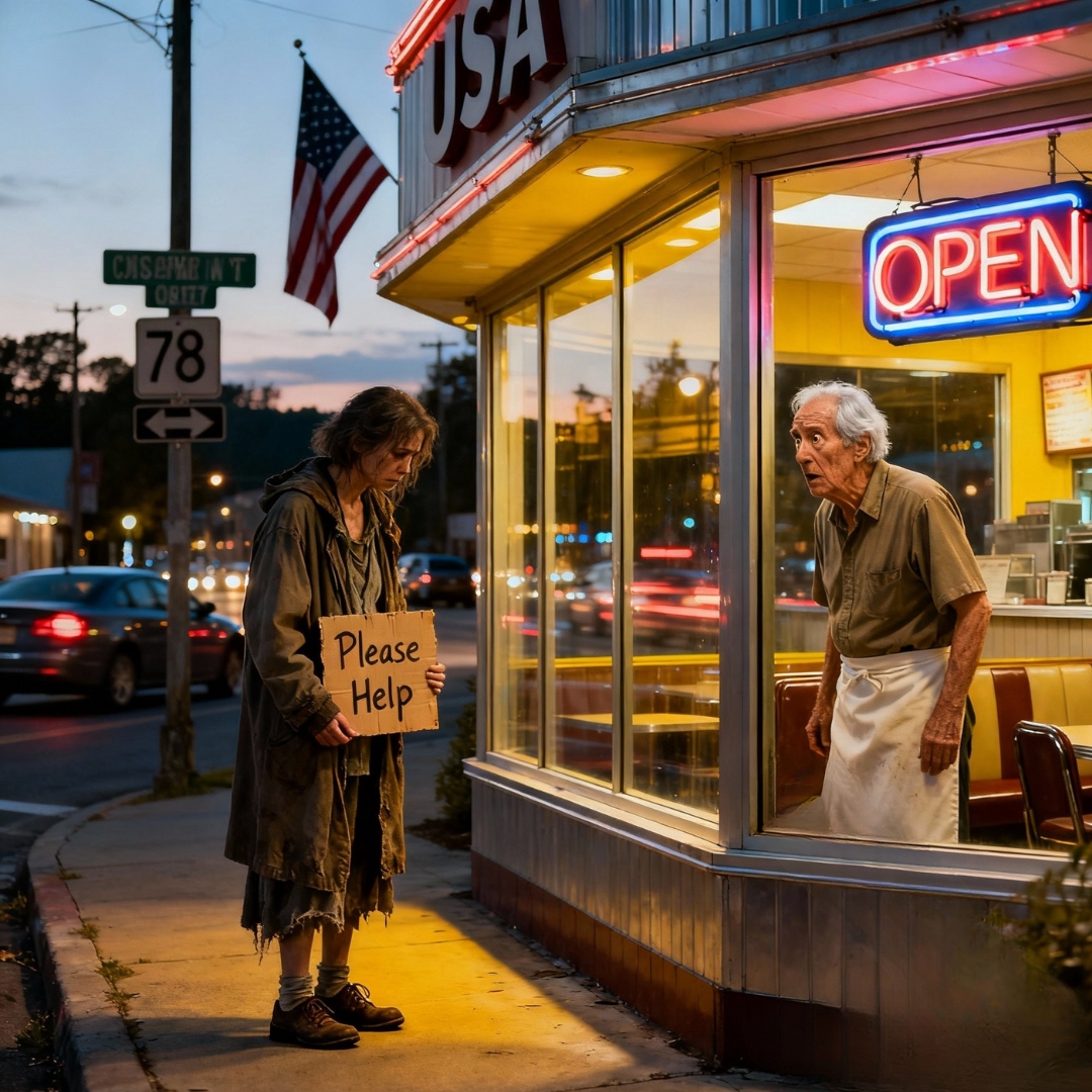 She hesitated. For a second I thought she’d run. Then she stepped past me into the diner.