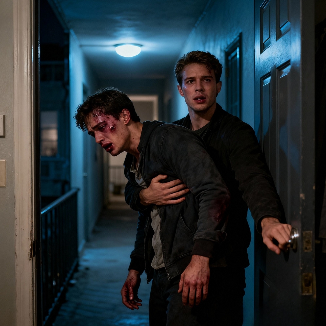 He knocked like a stranger. One soft, guilty tap against my Seattle apartment door, the kind of knock a man makes when he isn’t sure he still has the right to ask for help. I thought it was the neighbor at first, or a delivery at the wrong unit. But when I opened the door and saw my twin brother standing there—split eyebrow, swollen lip, one eye already blooming purple—something in me went absolutely still.