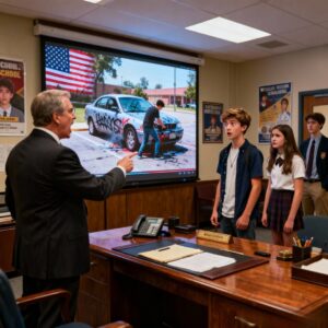By the time the bell rang at 8:00 a.m., the principal’s brand-new electric car looked like it had been dragged through a paint…