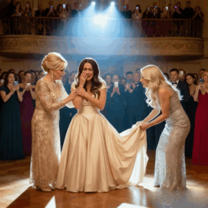 The champagne glass hit the marble floor before I even realized I’d dropped it—shattering into a spray of glitter under the soft glow…