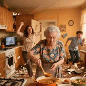 The ladle hit my temple so hard the metal rang against bone, a sharp, stupid sound swallowed by the television blaring from the…