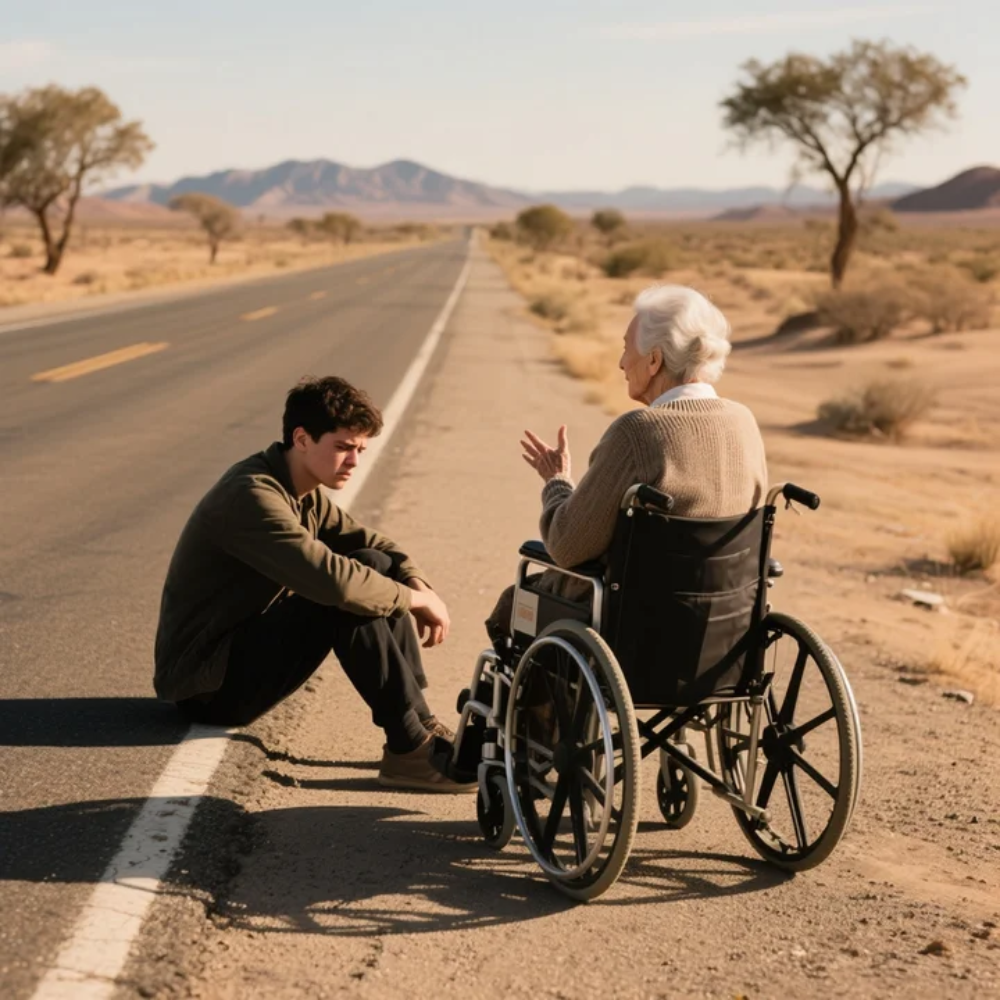 When shapes finally resolved out of the fog, I thought my son had come back. He hadn’t. The figure that approached looked like something a storm would dream if storms dreamed of mercy: an older woman in a transparent rain cape, sitting upright in an electric wheelchair as if on a throne, a tall man behind her holding a wide black umbrella like a standard. She stopped in front of me and looked down with eyes that were clear and hard as new ice. “It was your son, wasn’t it?” she said, and the contrast of that firm voice with the body in the chair unsettled me in a way I wouldn’t parse for days. I nodded. The rain had the grace to move its music a notch softer. “Come with me,” she said. “Pretend you’re my daughter. Your son and daughter-in-law are going to regret this bitterly.”