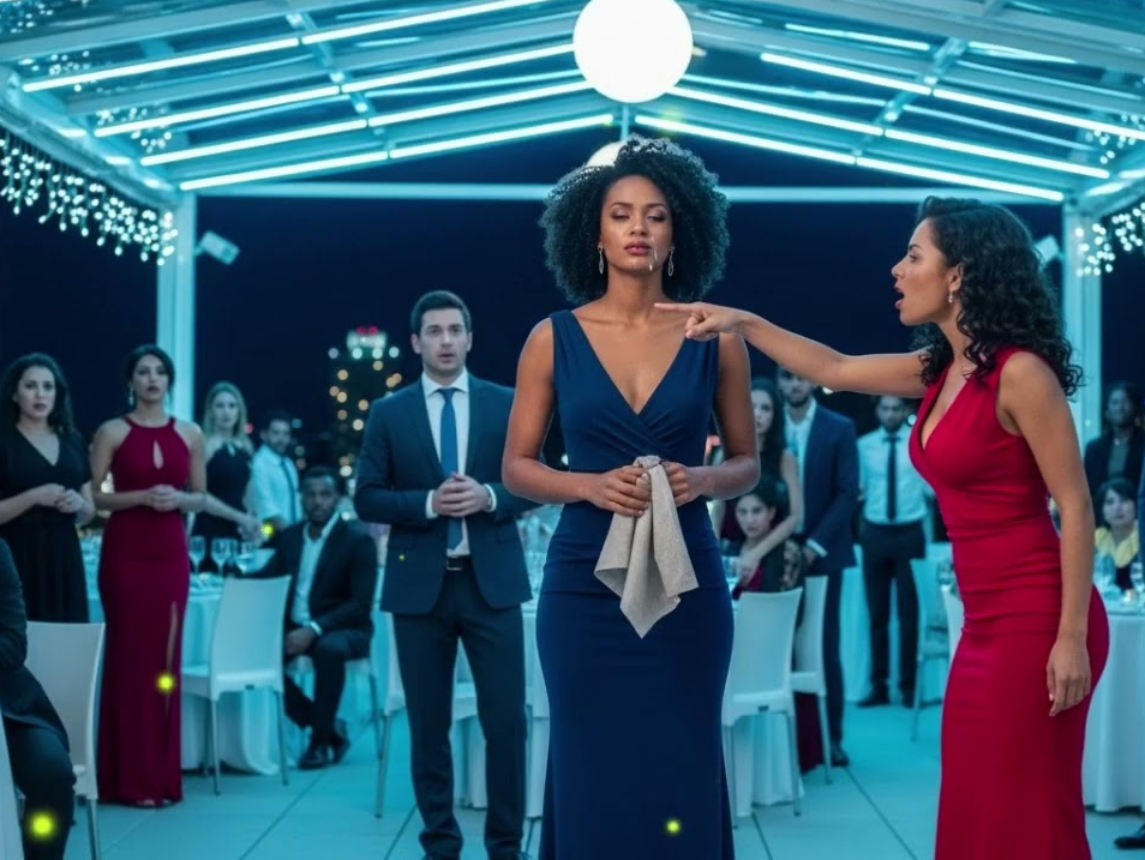 A murmur rippled through the crowd. Glasses lowered. Someone whispered, “Oh my God, is this really happening?” Another guest lifted her phone higher, framing the city skyline and the drama in one perfect vertical shot.