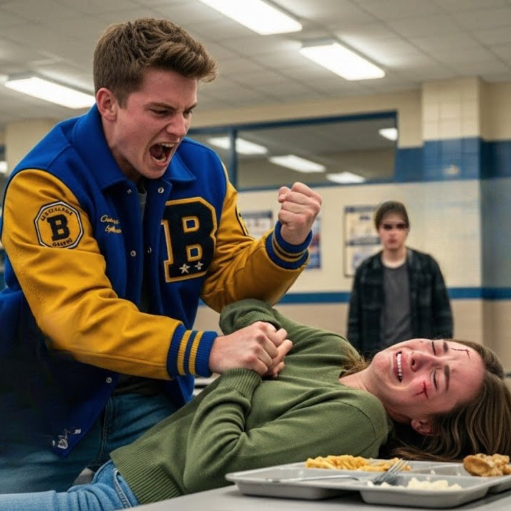 He dragged her two steps and threw—not into a wall, not across a room, just that cruel, performative toss toward the table beside hers where a group of sophomores had been mid-argument about physics. Trays went up. Plastic clattered. Pasta glided over a sweater like a bad mural. Someone’s chocolate milk spotted the wall above the recycling bin. The kind of mess custodians shake their heads at and teenagers remember for a week.