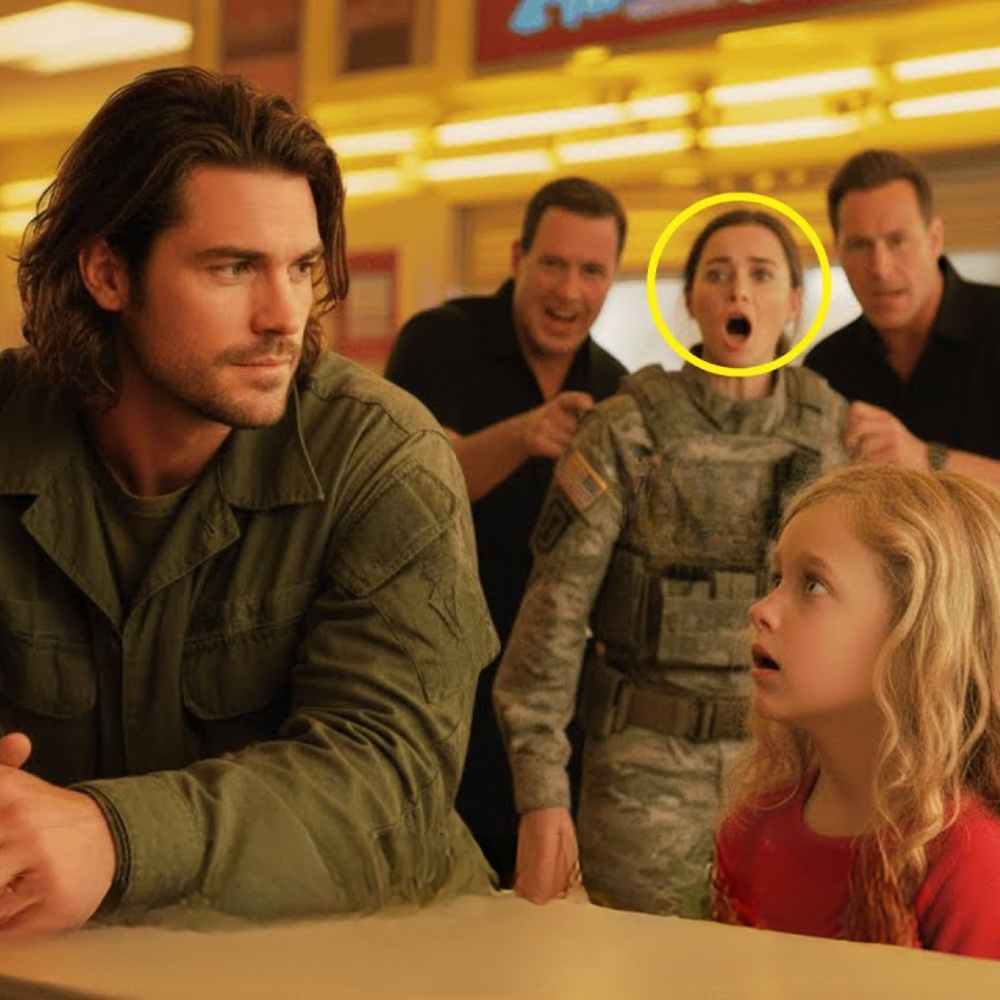 Cain stood beside the diner door with Emily half-hidden behind his leg. The young woman hugged herself, the chilly coastal wind raising goosebumps on her damp skin. Her eyes kept drifting to him—not with fear anymore, but with something soft and searching.