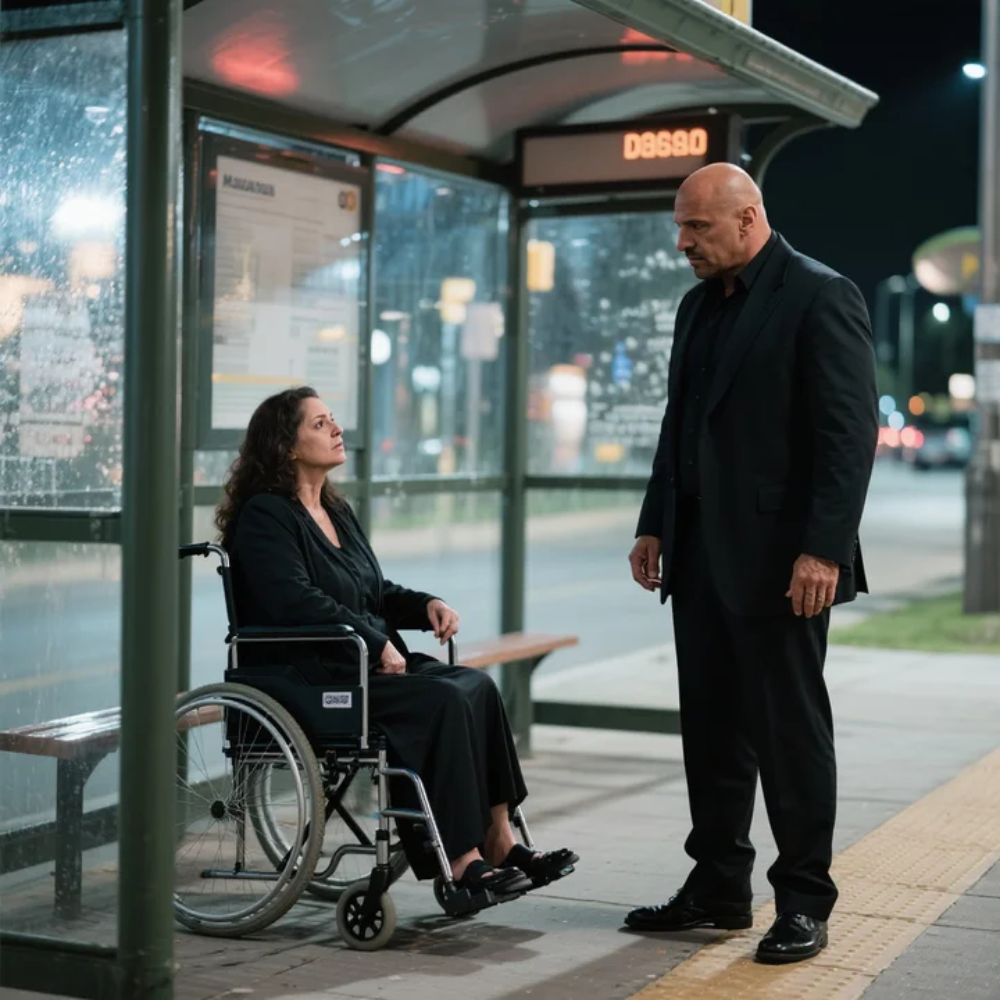 The sun was bleeding out across a deserted stretch of coastal highway on the American East Coast when Mia Hartley realized she had been left behind for real. The sky glowed a bruised orange, the asphalt radiated the day’s dying heat, and her folded wheelchair—leaning beside the splintered bench of an old bus stop—caught the last light like a metallic skeleton.