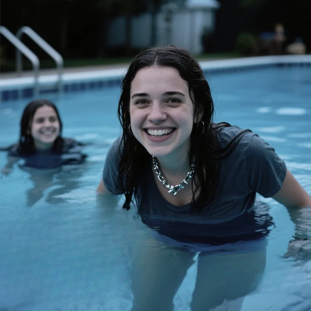 I kicked up, lungs burning, hair slapping my cheeks, blouse glued to my ribs. I broke the surface with a cough that tasted like pool chemicals and swallowed pride. The first thing I saw was a phone pointed at me like an eye. The second was the shape behind it—Ashley, sixteen, eyeliner sharp and wings a little crooked from sun and sweat—framed by a row of red Solo cups lined like a fence on a plastic table.