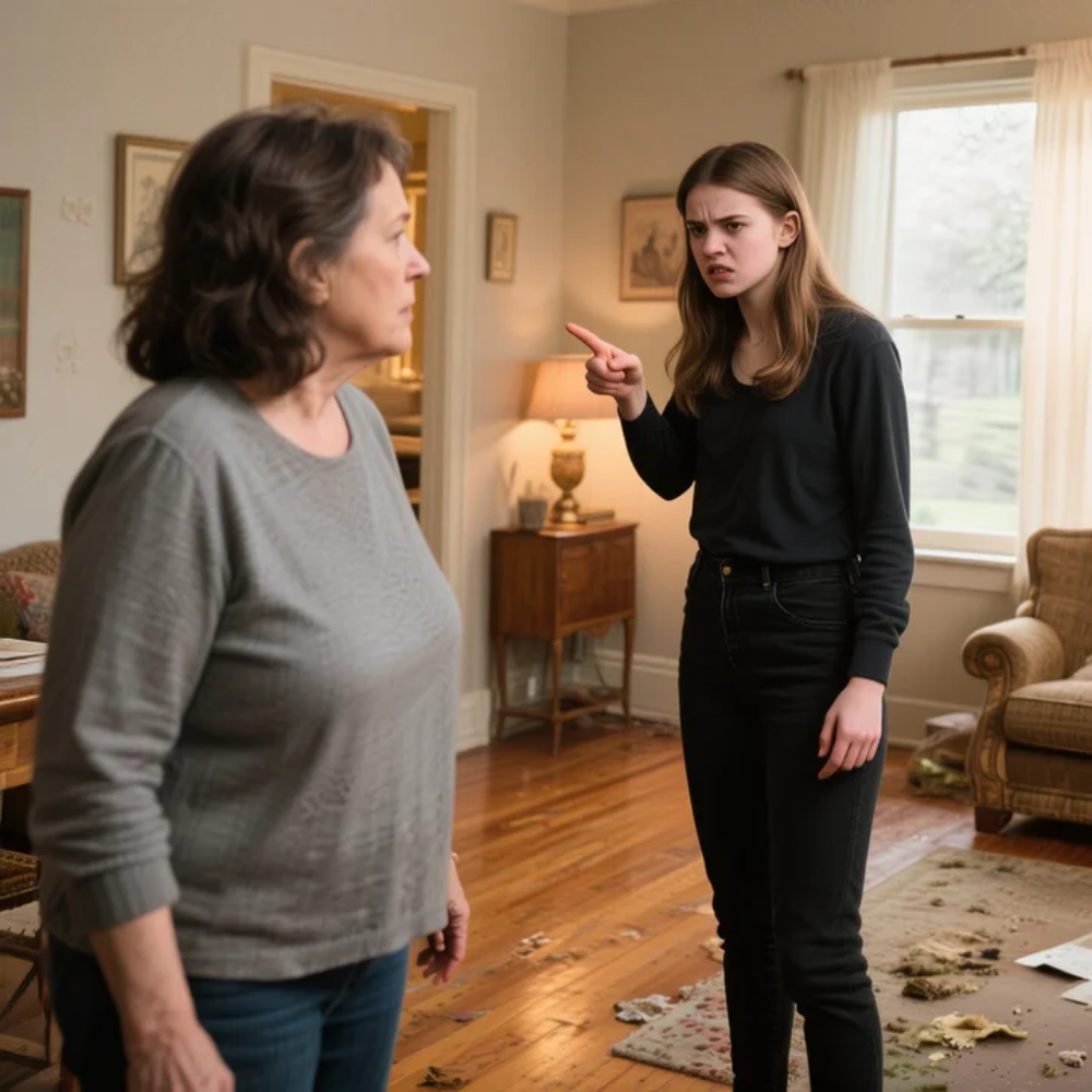 The lock gives. I step into my living room transported into a smaller, louder universe, my sectional jammed under a ceiling fan that tattles with a wobble. The glass coffee table reflects a TV paused on a competition show where strangers reinvent rooms in forty minutes. And there, at the center of everything that is mine, sits my mother, Linda Brooks, drinking tea like a queen hosting scones and forgiveness. Miranda leans against the kitchen counter with the posture of a woman who believes gravity is other people’s job.