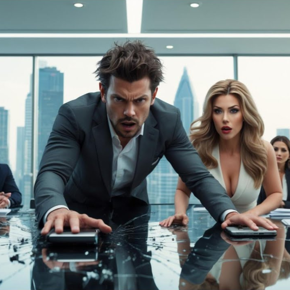 Cold white LEDs flooded the room, turning the polished surface into a mirror of power and money. Executives in thousand-dollar suits sat frozen around the table, the city hanging outside the floor-to-ceiling windows like a silent audience.
