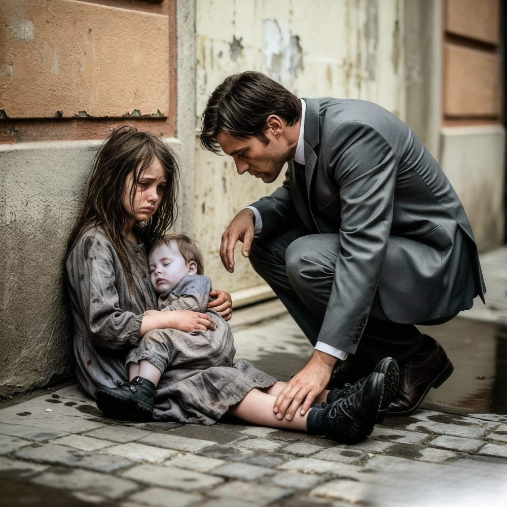 They stepped back into the brightness together. A man in a thousand-dollar suit. A barefoot child. A baby fighting for breath. The city, of course, barely glanced up.