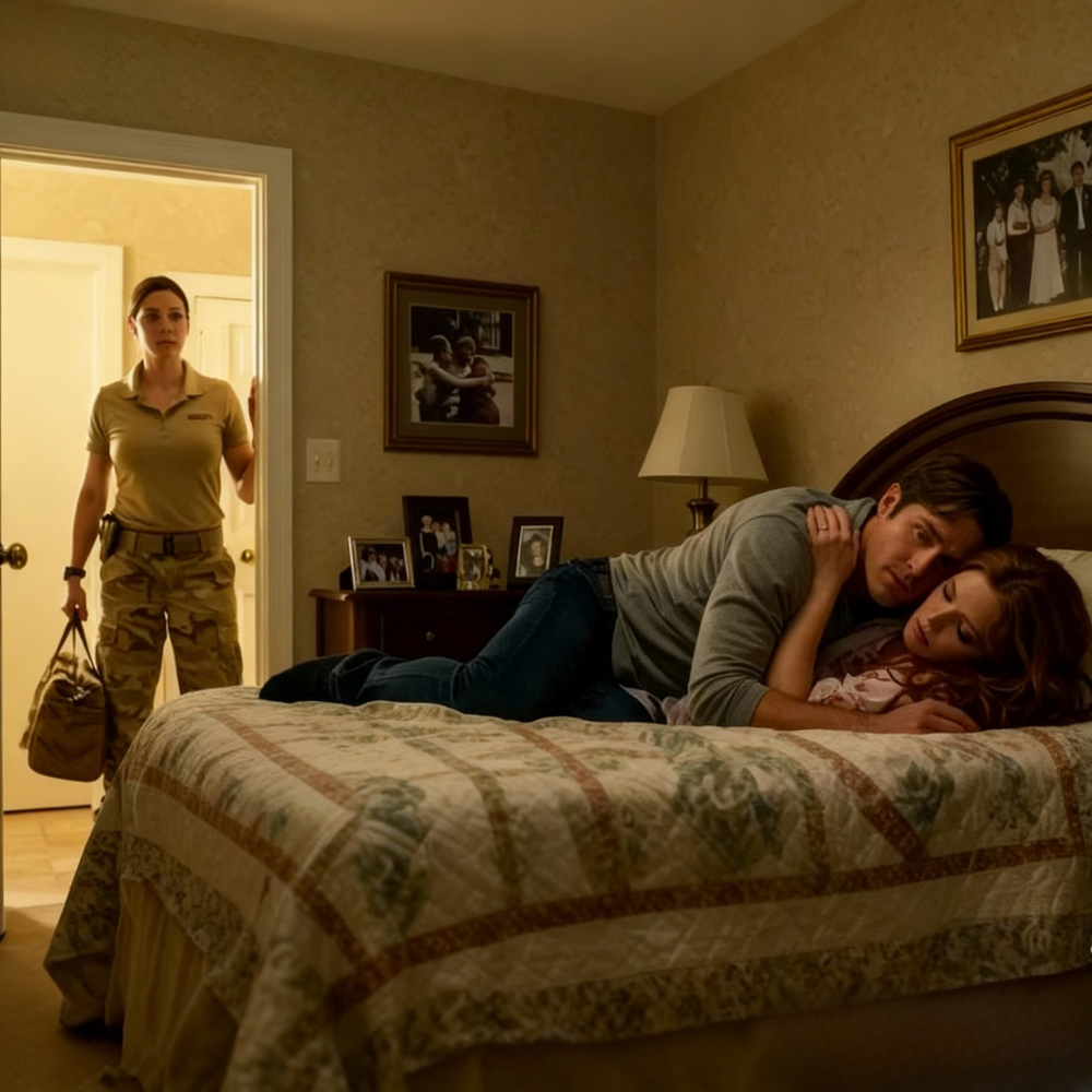 He left, and the house felt emptier, bigger, quieter. I couldn’t face the bedroom, not yet. Instead, I made camp on the living room couch, my service pistol within reach, old habits from overseas kicking in. Sleep light. Stay armed. Trust no one. The night stretched long, the first of many.