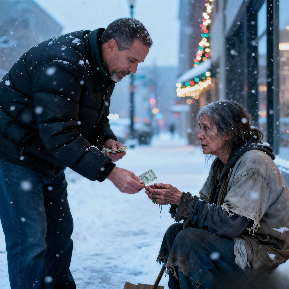 Simone no longer dropped coins. She folded single bills into her palm and slipped them quietly into the cup—sometimes twenty dollars, sometimes more, especially on the days Summit deposited her paycheck and she felt rich in a way that had nothing to do with numbers.