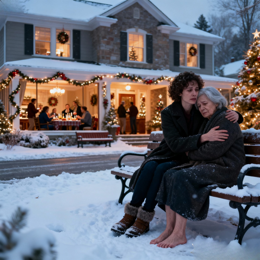 One second I was their daughter, standing in a foyer filled with a fifteen-foot Christmas tree and a six-thousand-dollar floral arrangement. The next second I was just another person on the wrong side of a heavy front door, watching my only suitcase skid across frozen marble steps like it belonged to someone else.