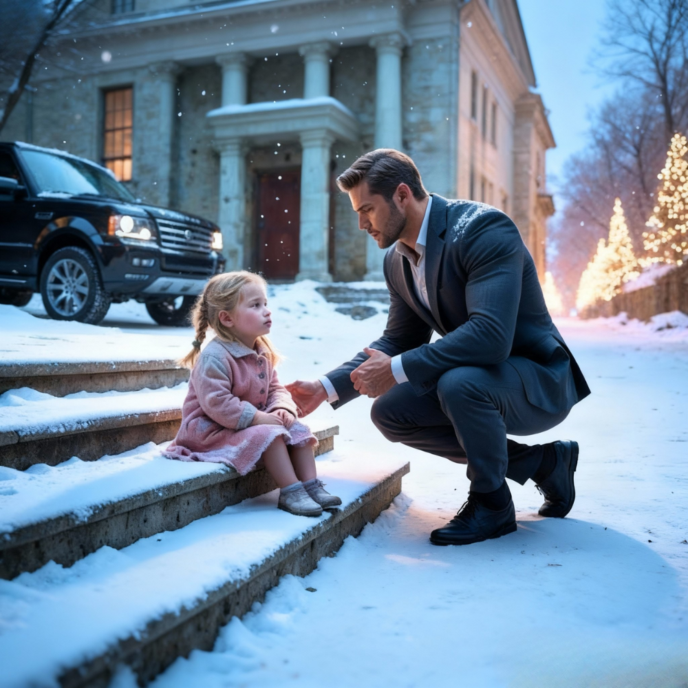 A little girl, four or five at most, sat on the snow-covered steps as if someone had set her there and walked away. She wore a thin pink coat, more suited to a mild New Jersey spring than a winter storm that was leading every national newscast. Her blonde hair was braided, the braid slipping loose, and her small gray shoes were dusted with snow. Her feet didn’t reach the step below; they swung a few inches above the ground, trembling from cold.