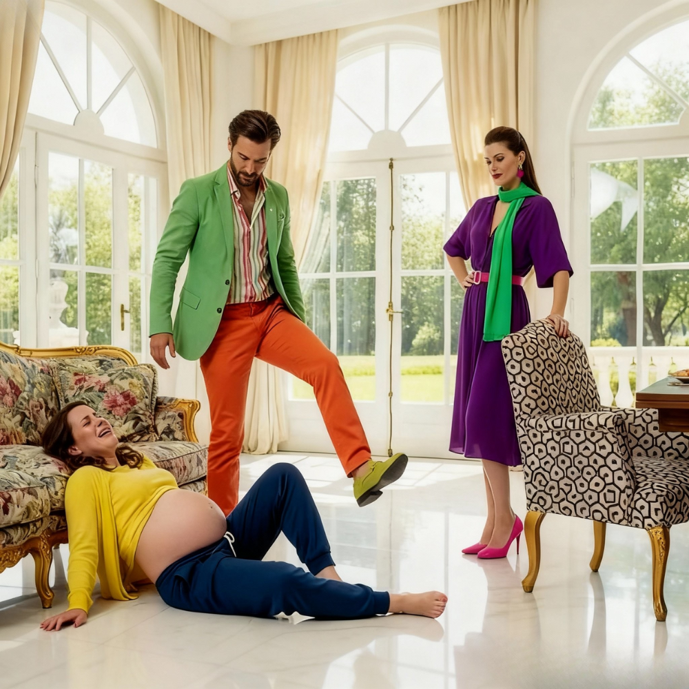 For a heartbeat the world froze. The chandelier swayed overhead, the storm wailed like a living thing, and I realized that single strike had shattered not only my ribs but every illusion of love I had ever known. I crumpled, breathless, tasting copper, the chill of the tiles biting through my skin. Warm liquid spread beneath me—dark, frightening, real. That was my baby’s blood.