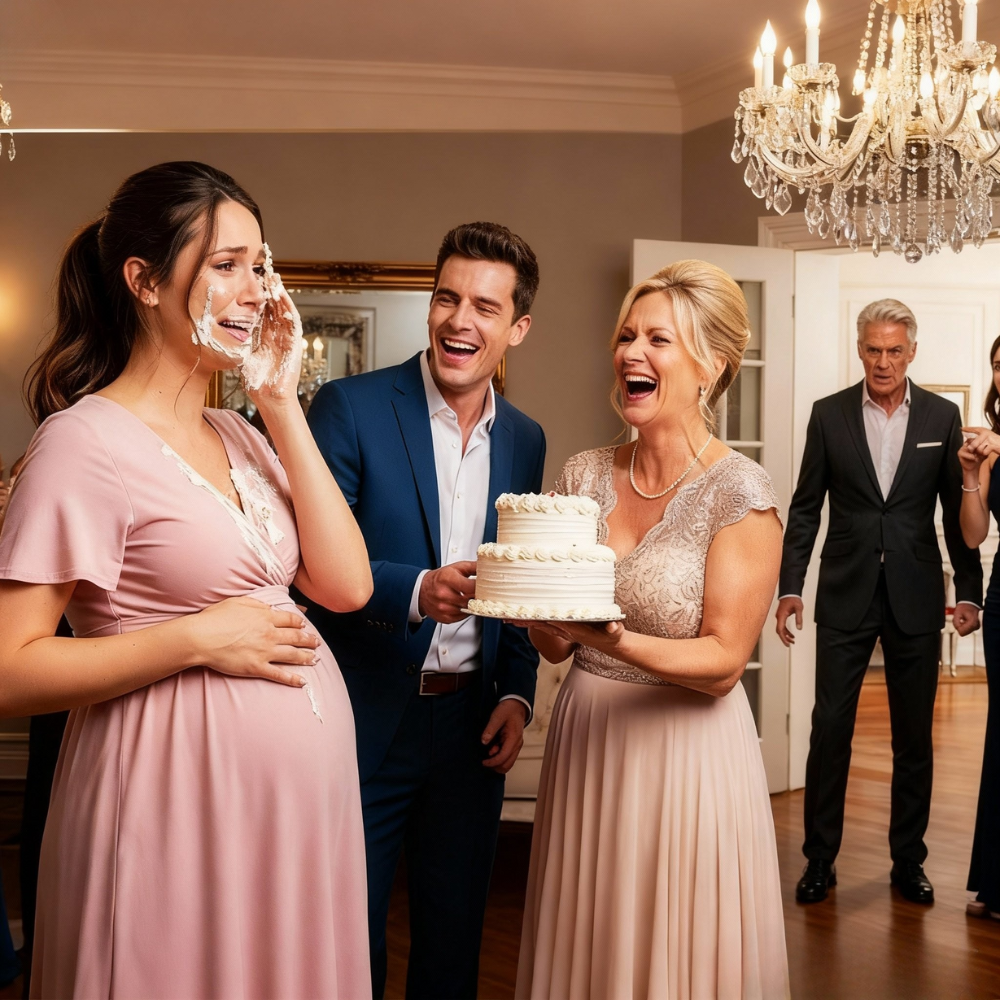 Frosting exploded across my eyes, nose, mouth, hair. My dress was ruined. My dignity, shattered. The crowd roared with laughter as I stood there, pregnant, trembling, and humiliated.