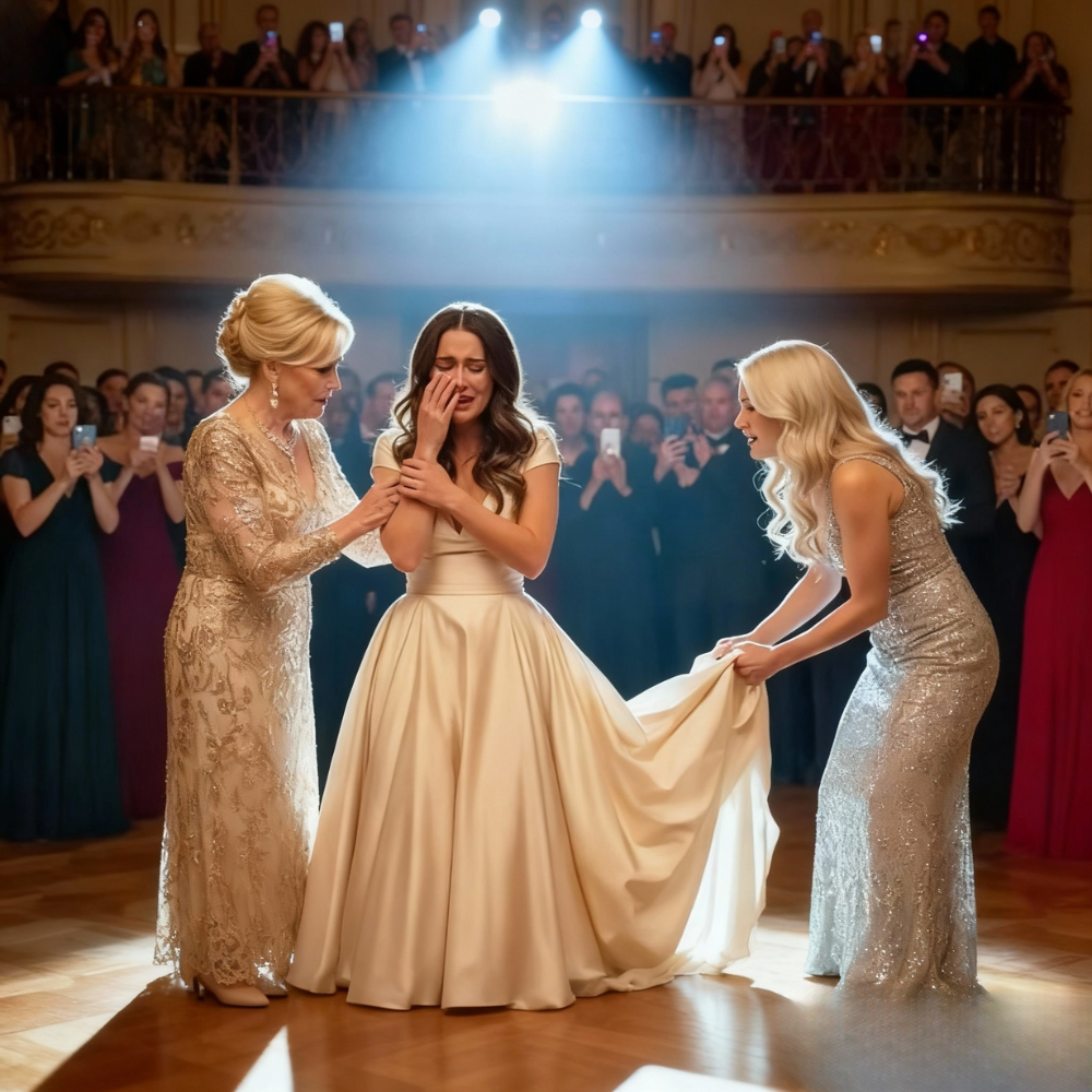 The humiliation that followed felt like falling through ice—sharp, cold, endless. They grabbed my arms. They pulled at my dress. I clutched the fabric, shaking, begging them to stop. The dress slipped, leaving me exposed in nothing but basic undergarments—still modest, but stripped enough to feel dehumanized.