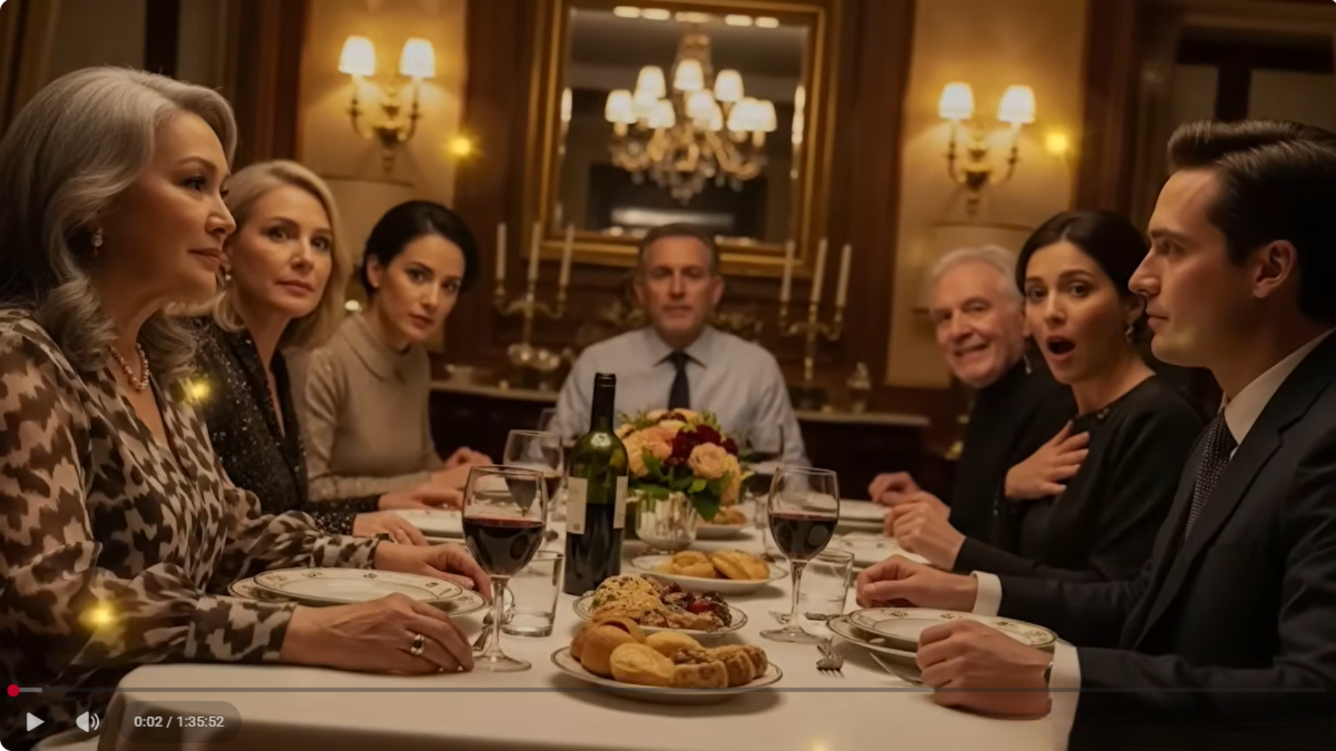 Silence fell, greedy and exact. No one coughed. No one shifted in those cream-upholstered chairs that looked like money had been steam-pressed into them. Tiffany’s mother’s bracelet froze midair, diamonds impatient to clink against her glass. Tiffany herself—perfect hair, perfect nails, perfect judgment—choked on a swallow of Cabernet and sputtered, “What rent? What rent are you talking about?” Her sisters’ glasses stalled at their lips, expensive wine warming in their hands. Somewhere behind me, a bow slipped on a violin record, and the wrong note made the whole room flinch.