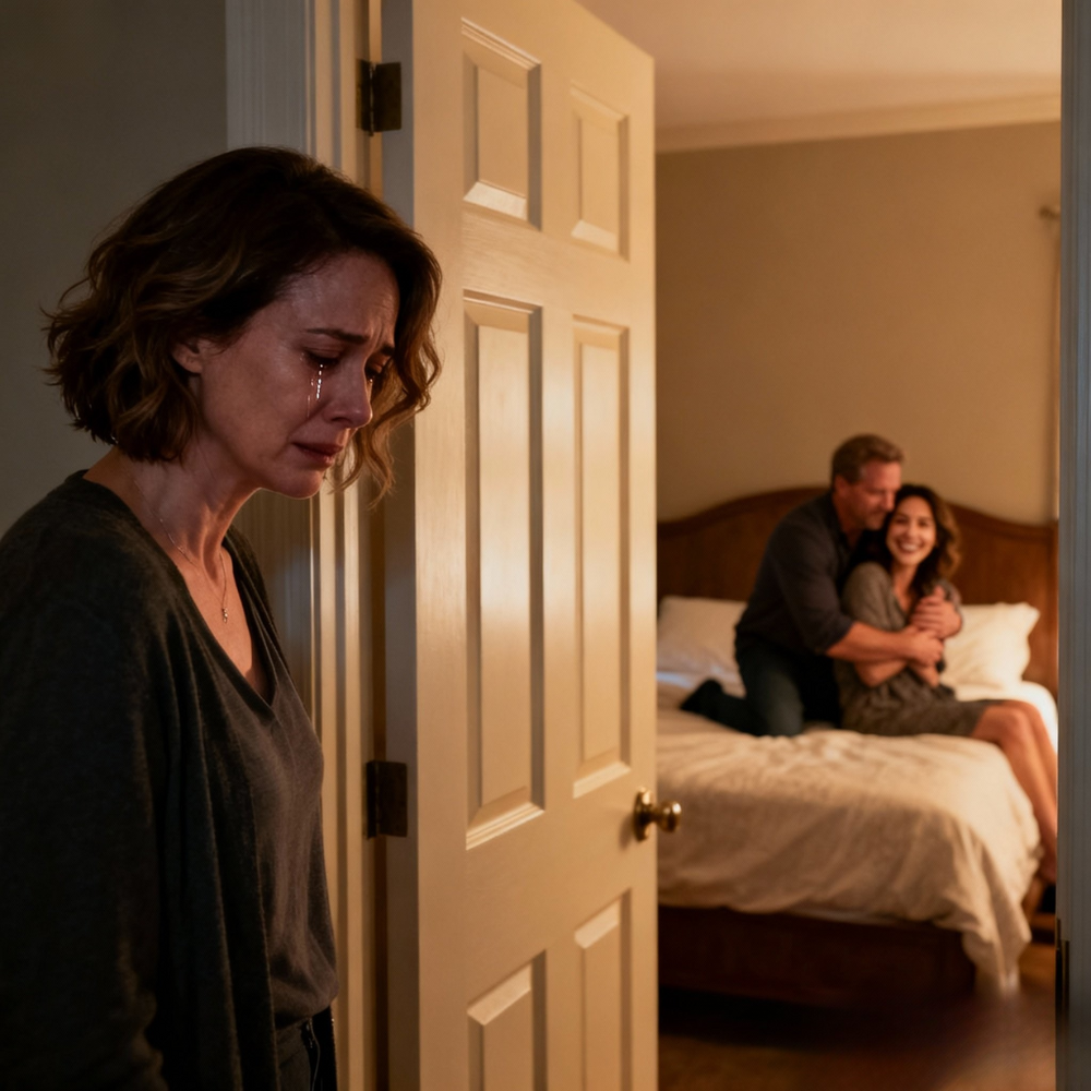 Through the narrow seam I saw them. Our bed. My bed. Antonio’s shirt unbuttoned down to the sternum, skin the color of warm sand. Vanessa’s hair spilled across my pillow like it had been poured. They lay angled toward one another in that lazy geometry people use when they’re confident doors will stay shut.